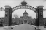 Description :UNE PORTE EN ARCHE A L'AVANT-PLAN PORTE LE NOM DE L'HOPITAL. BATISSE EN PIERRES, AU CENTRE, TOIT EN PENTE SURMONTE D'UNE COUPOLE.