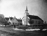Description :VUE EXTERIEURE DE LA PREMIERE EGLISE ST-PATRICE DE MAGOG CONSTRUITE EN 1861. UNE RESIDENCE EST VISIBLE TOUT A COTE, PEUT-ETRE S'AGIT-IL DU PRESBYTERE.