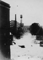 Description :RIVIERE MAGOG ET SON BARRAGE NO4. A L'ARRIERE-PLAN L'EDIFICE DE LA KAYSER.