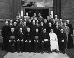 Description :RHETORICIENS DE 1931-1932 ET PROFESSEURS DEVANT LE SEMINAIRE DE SHERBROOKE. 1ERE RANGEE: 1ER, CHANOINE NAPOLEON PEPIN; 2E, NOTAIRE DUBUC; 3E, ABBE ALPHONSE LABRECQUE; 4E, CHANOINE MICHEL COUTURE; 5E, ABBE RENE CONSTANT; 6E, R.P. JOURDAIN; 2...