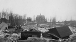 Description :9.1 MAISON D'ALEX Jr LEPINE, SITUEE COIN COMEAU ET ST-JOSEPH DONT LE 1er NIVEAU A ETE ARRACHE. 9.2 GLACES ET MORCEAUX DE BOIS, FENETRES DISPERSEES DANS LA RUE LAVAL.