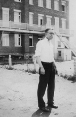 Sujet principal :ALPHONSE REMILLARD DEVANT LE COUVENT DE BROMPTONVILLE