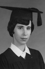Description :Mlle MARTIN FINISSANTE AU COUVENT MARIE-IMMACULEE A BROMPTONVILLE PORTANT TOGE ET MORTIER.