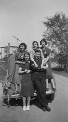 Description :1.1 1ER RANG DE GAUCHE A DROITE: STELLA MARTIN ET JEAN-PAUL MARTIN, ASSISES SUR LA VOITURE DE GAUCHE A DROITE, MLLE LAMBERT, GISELE BEAUDETTE? ET JEANNE MARTIN; 1.2 EN AVANT-PLAN MME MARTIN ET SES DEUX FILLES, 2E RANGEE DE GAUCHE A DROITE:...