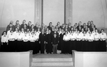 Description :PHOTO DE GROUPE DE LA CHORALE STE-THERESE D'AVILA QUI DONNE UN CONCERT LORS DE L'INAUGURATION DES ORGUES DE L'EGLISE.1.1 PRESENCE DU CURE JEAN-FRANCOIS DEVOYAU AU CENTRE. A SA DROITE FIGURE JOHN F. LAUEGHARE (AVEC RESERVE) ET LEONIDAS BACHAND,...