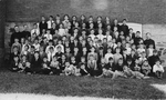 Description :EN 1er PLAN, LES ELEVES LES PLUS JEUNES SONT COUCHES SUR L'HERBE, EN RANGEES, SELON LEURS NIVEAUX, DANS LA COUR DE L'ACADEMIE. 3e RANGEE A L'EXTREMITE DROITE, LE FRERE MARIE-EDMOND. EN ARRIERE-PLAN, MUR DE BRIQUE DE L'ACADEMIE.