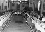 Description :TENUE D'UN BANQUET EN L'HONNEUR DE L'ABBE MAURICE O'BREADY. PHOTO DE GROUPE AUTOUR D'UNE TABLE POUR FETER SON 25e ANNIVERSAIRE DE VIE SACERDOTALE