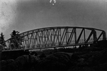 Description :PONT AVEC STRUCTURE METALLIQUE AVEC TRAVERSES DE METAL ET GARDE-FOU.