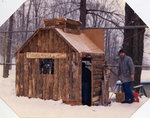 Description :1.1 PRES D'UNE CLOTURE GRILLAGEE, UNE PETITE CABANE A SUCRE EN BOIS AVEC UN TOIT EN PENTE. A TRAVERS LA FENETRE UN APPAREIL A CASSETTE ET AU-DESSUS DE LA FENETRE C'EST ECRIT: TUQUE-ROUGE-1988. A GAUCHE UN HOMME DEBOUT. 1.2 L'INTERIEUR DE LA CA...
