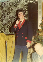 Description :5.1 DEBOUT ROSAIRE JACK CASTONGUAY, PRESIDENT DU CLUB DE RAQUETTES TUQUE-ROUGE. IL EST HABILLE D'UN VESTON BLEU AVEC LE COLLET, LE BOUT DES MANCHES, LES POCHES ET LES BOUTONS DE COULEUR ROUGE. IL A UN MICROPHONE DANS LA MAIN DROITE. IL Y A...