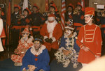Description :6.1 UN HOMME DEGUISE EN PERE NOEL ENTOURE DE 3 CLOWNS HABILLES EN COSTUME COLORES ET LE VISAGE MAQUILLE. A DROITE UNE MAJORETTE HABILLEE TOUT EN ROUGE, ROBE ET CHAPEAU, TENANT UN BATON DE MAJORETTE. LE CLOWN AU 1er PLAN DANS UN HABIT BLEU EST ...