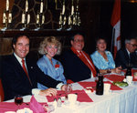 Description :9.1 ASSIS A LA TABLE D'HONNEUR DE GAUCHE A DROITE, ANDRE HAMEL DEBUTE(?), Mme HAMEL, JULIEN AUBE PRESIDENT, Mme AUBE. DERRIERE EUX, DES TROPHEES SUR UNE TABLETTE. A DROITE, LE DRAPEAU DU CANADA. 9.2 A 9.4DIFFERENTES PERSONNES PARLENT AU MICRO....