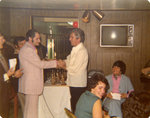 Description :14.1 A DROITE, VETU D'UNE CHEMISE BLANCHE, M. JEAN-PAUL VALLEE REMET UN TROPHEE A UN PARTICIPANT, M. GRONDIN. 14.2 A DROITE,DEBOUT, JACQUES CASTONGUAY REMET UN TROPHEE A ROSAIRE JACK CASTONGUAY, PARTICIPANT A LA LIGUEDE BOWLING.