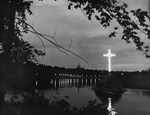 Sujet principal :ILE DU PIN SOLITAIRE SURMONTEE D'UNE CROIX ILLUMINEE, LA NUIT