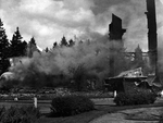 Description :DEBRIS DU STANSTEAD COLLEGE APRES LE FEU, IL NE RESTE PRESQUE PLUS RIEN, A L'EXCEPTION DE 2 POUTRES DE L'ENTREE, CALCINEES MAIS DEBOUT.