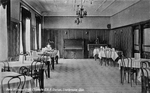 Description :INTERIEUR DE LA SALLE A DINER DE L'HOTEL WINDSOR. TABLES AVEC NAPPES A CARREAUX ET CHAISES CANNEES. PIANO DROIT AU FOND DE LA SALLE AVEC TABOURET ROND.