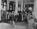Description :GROUPE D'HOMMES A L'INTERIEUR DU BUREAU DE POSTE. A GAUCHE DE LA PHOTO LE DEPOT DES LETTRES. A DROITE LE BUREAU DU DIRECTEUR.