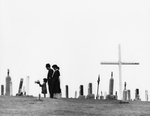 Description :8.1 UN COUPLE ET UNE FILLETTE SONT PLACES DEVANT UNE PIERRE TOMBALE. LA PETITE FILLE TIENT UNE GERBE DE FLEURS DANS SES MAINS COMME UNE OFFRANDE. AUTOURS D'EUX DE NOMBREUSES AUTRES PIERRES ET A DROITE UNE GROSSE CROIX DE BOIS. IL S'AGIT DU CIM...