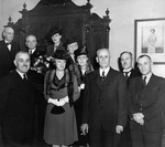 Description :M.GEORGES DUHAMEL, SOCIETAIRE DE L'ACADEMIE FRANCAISE ET PRESIDENT DIRECTEUR GENERAL DE L'ALLIANCE FRANCAISE, ET SA FEMME, PHOTOGRAPHIES EN COMPAGNIE DE PERSONNALITES LITTERAIRE SHERBROOKOISES QUI FORMENT LE COMITE LITTERAIRE. ILS SONT VENUS A...