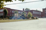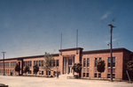 Description :EDIFICE EN BRIQUE ROUGE A TOIT PLAT. ECRITEAU: ECOLE POLYVALENTE J.H. LECLERC.