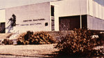 Description :EN AVANT-PLAN, ESCALIER. AILE INDIQUANT LE CENTRE CULTUREL A 2 ENDROITS AVEC SCULPTURE EN FER. BATISSE EN CIMENT EN DEUX TONS.