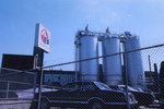 Description :EDIFICE RECTANGULAIRE DE BRIQUES ROUGES DERRIERE LA CLOTURE GRILLAGEE. STATIONNEMENT DES OUVRIERS A DROITE. LOGO DE L'AMERICAN BILTRITE. EN ARRIERE-PLAN A DROITE, 3 RESERVOIRS.