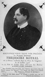 Notes :AU VERSO EST COLLEE UNE ENVELOPPE CONTENANT LA CARTE MORTUAIRE DE THEODORE BOTREL AINSI QU'UN MOT DE REMERCIEMENT DE MADAME BOTREL POUR LE TEMOIGNAGE DE SYMPATHIE QUE LEONIDAS BACHAND AVAIT ENVOYE.