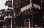 Description :SERIE DE LOGEMENTS ANNEXES AUX AUTRES. A TROIS NIVEAUX AVEC GALERIES FERMEES AU 2e ET 3e ETAGE. ESCALIER AVEC RAMPE EN FER ET MARCHES DE BOIS. TOIT PLAT.