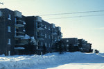Description :PLUSIEURS IMMEUBLES A LOGEMENTS MULTIPLES LE LONG D'UNE RUE ENNEIGEE.