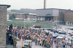 Description :DEVANT LA FACULTE D'ADMINISTRATION DE L'UNIVERSITE DE SHERBROOKE, UN GROUPE DE MARCHEURS RASSEMBLES. PARMI EUX, PLUSIEURS PORTENT IMPERMEABLES OU PARAPLUIES.