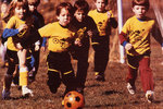 Description :4.1 GROUPE D'ENFANTS A LA POURSUITE DU BALLON. 4.2 MATCH D'ADULTES. QUATRE JOUEURS DEUX EN ROUGE ET DEUX EN BLANC. UN DES JOUEURS EFFECTUE UN COUP DE PIED AU BALLON.