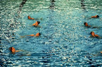 Description :7.1 HUIT BAIGNEUSES, QUATRE DE CHAQUE COTE, LA TETE HORS DE L'EAU. 7.2 DEUX NAGEUSES PRESQUE COMPLETEMENT IMMERGEES TIENNENT UNE TROISIEME BAIGNEUSE QUI EXECUTE UN "SALUT" TOUT A FAIT HORS DE L'EAU.