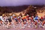 Description :PLUSIEURS CYCLISTES SUR VELO DE ROUTES COMPETITIONNENT. A L'ARRIERE-PLAN UN CHAMPS ET DE NOMBREUX ARBRES.
