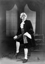 Description :PORTRAIT DEDICACE DE LOUIS LA RUE EN TENUE GALANTE DANS SON ROLE DU "COMTE DE LUXEMBOURG", A L'INTENTION DE M. LEONIDAS BACHAND.