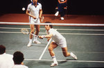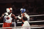 Description :LES DEUX ADVERSAIRES SE FONT FACE. A GAUCHE REPRESENTANT DU CANADA. A DROITE, CELUI DES ETATS-UNIS.