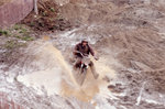 Description :28.1 UN MOTOCYCLISTE TRAVERSE UN TERRAIN BOUEUX. 28.2 DEUX AUTRES PASSENT SUR UN TERRAIN BOUEUX EGALEMENT MAIS DEVANT UNE FOULE TRES NOMBREUSE.