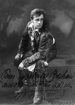 Description :PHOTO D'EDMOND CLEMENT, CELEBRE TENOR FRANCAIS EN TENUE, DEDICACEE A L'INTENTION DE LEONIDAS BACHAND. AU VERSO EST COLLEE UNE IMAGE DU PERSONNAGE