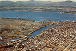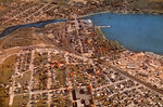 Description :VUE AERIENNE DE LA VILLE DE LAC-MEGANTIC. A DROITE LE LAC LUI-MEME ET A GAUCHE LA RIVIERE CHAUDIERE QUI L'ALIMENTE. DE PART ET D'AUTRE DE LA RIVIERE ET DU LAC, UN IMPORTANT DEVELOPPEMENT URBAIN.
