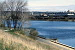 Description :EAST-ANGUS TRAVERSEE PAR LA RIVIERE ST-FRANCOIS. CHEMINEE DE LA DOMTAR. EGLISE DE LA PAROISSE ST-LOUIS DE FRANCE.