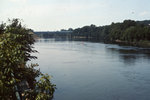 Description :DE NOMBREUX ARBRES DE CHAQUE COTE DE LA RIVIERE ST-FRANCOIS. A L'ARRIERE-PLAN LE PONT ST-FRANCOIS.