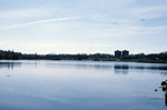 Description :UNE TRES LARGE VUE DU LAC DES NATIONS. AU LOIN DEUX EDIFICES A LOGEMENTS.
