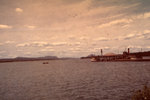 Description :CONFLUENT DES RIVIERES ST-FRANCOIS ET MAGOG. A L'ARRIERE-PLAN LE PONT DU CP. AU LOIN, LE QUARTIER MARQUETTE.
