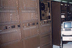 Description :RESSEMBLE A UN IMMENSE CASIER METALLIQUE AVEC PLUSIEURS BOUTONS. A DROITE, FENETRE VITREE CONTENANT UN GENRE DE RUBAN MAGNETOSCOPIQUE. TABLE BASSE AVEC ECRAN CATHODIQUE A L'EXTREME DROITE.