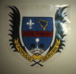 Description :DES FEUILLES DE LAURIER EN FORME DE V ET A L'INTERIEUR UN DESSIN COMPRENANT UNE FLEUR DE LYS, UNE HARPE, DEUX ARBRES ET LE RESERVOIR D'EAU ET LE MOT ROCK FOREST. EN DESSOUS, L'INSCRIPTION "POPULO SERVIRE".