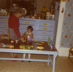 Description :1.1 - 1.2 MARGUERITE MORISSET REGARDE UNE JEUNE ENFANT VETUE D'UNE ROBE VIOLETTE FAIRE DES CASSE-TETES 1.3 MME MORISSET SUPERVISE QUELQUES ENFANTS QUI JOUENT AVEC DES BLOCS