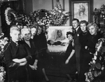 Description :JEANNINE RIDDEZ ETENDUE DANS SON CERCUEIL EST ENTOUREE DE SES HUIT FILLES ET DE SON FILS JOSE.