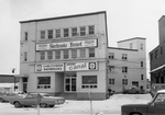 Description :FACADE DU MAGASIN A RAYONS A.L. GREEN LTD. LE REZ-DE-CHAUSSEE EST COUVERT D'AFFICHES "LOCAL A LOUER". LES LETTRES LUMINEUSES ANNONCANT LE MAGASIN ONT ETE ENLEVEES.