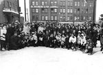 Notes :LA MASCOTTE EST JEANNE D'ARC LAROCHELLE 7 ANS. JEANNINE LESSARD DU CLUB DOLLARD EST LA GRANDE CHAMPIONNE DE COURSE DE RAQUETTES DANS LA CATEGORIE DES FEMMES. CHAMPIONNE CANADIENNE ET AMERICAINE. LA PHOTO EST PRISE DEVANT L'HOTEL UNION