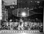 Description :PHOTO DES TROPHEES, MEDAILLES ET COUPES, A TRAVERS LA VITRINE D'UN MAGASIN DE SHERBROOKE, QUI SERONT OFFERTS AUX GAGNANTS DES EPREUVES DU CONGRES INTERNATIONAL DE LA RAQUETTE, TENU A SHERBROOKE EN JANVIER 1951.