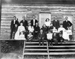 Description :UNE FAMILLE CONSTITUEE DE 23 PERSONNES, PARENTS, ENFANTS, PETITS-ENFANTS, PREND LA POSE SUR UN LARGE PERRON. A REMARQUER: LA FINITION DES MURS DE LA MAISON.